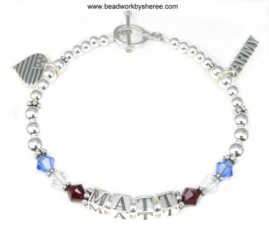 Has the military deployed a loved one?  With their name on this beautiful patriotic Deployment Bracelet®, you can keep them in your thoughts while showing your support!